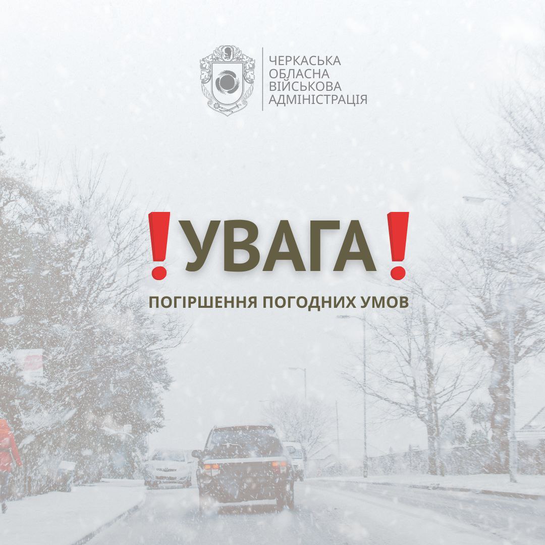 – Спершу — дощ і мокрий сніг, надалі — хуртовини та суттєве зниження температури, – зазначив він. – Про це попереджає Черкаський обласний центр з гідрометеорології. Будьте уважними й обережними, особливо на дорогах.